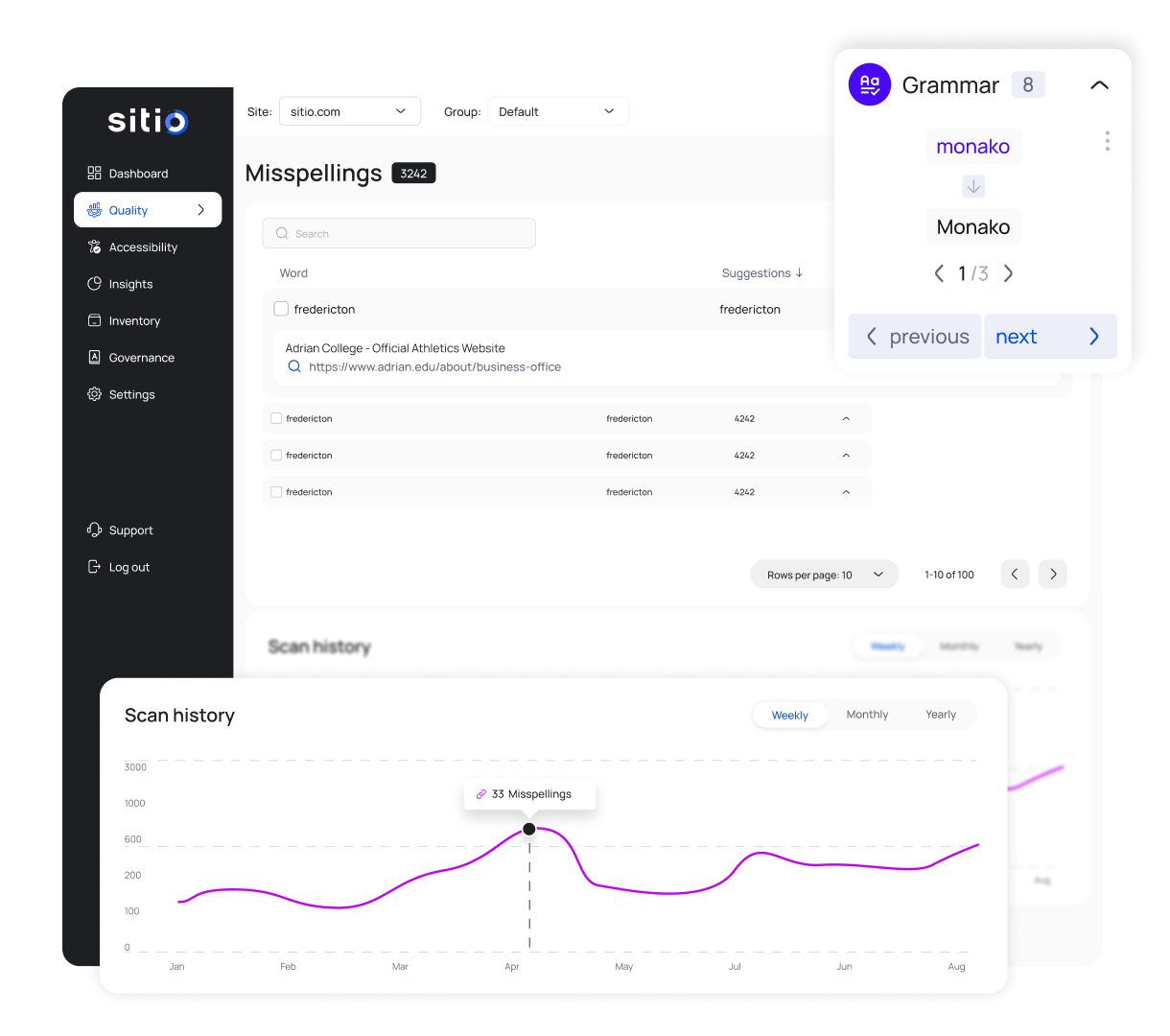 The Grammar and Misspell feature by Sitio is your key to maintaining a polished, professional, and error-free website. It's not just about correcting mistakes; it's about elevating your online presence to new heights. Let Sitio be your partner in perfecting your written content, ensuring a positive and lasting impression on your website's visitors.